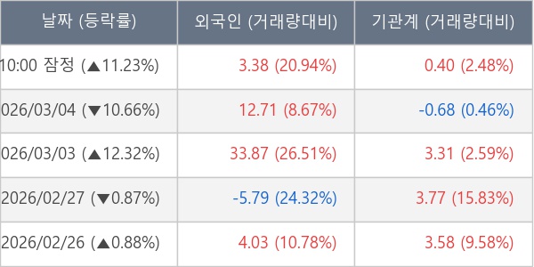 [표] 주요 기관별 순매매량 (단위 만주)