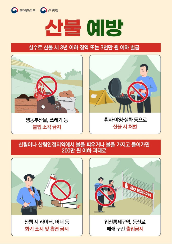 입산 시 화기 소지 금지…산불 발견 즉시 신고·대피