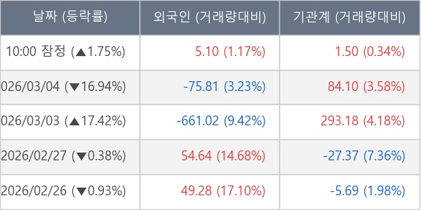 ※ 사모펀드 등 일부 기관의 순매매량은 표시되지 않음