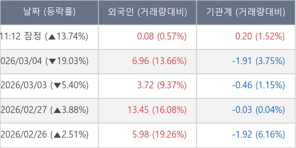 [장중수급포착] 에이프릴바이오, 외국인 5일 연속 순매수행진... 주가 +13.74%
