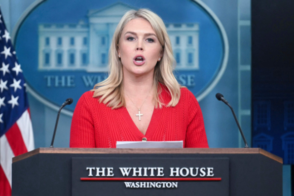 캐롤라인 레빗 백악관 대변인이 백악관에서 정례브리핑을 하고 있다. [사진=AFP/연합뉴스] |