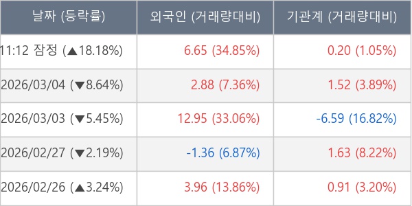 [표] 외국인ㆍ기관 순매매량 (단위 만주)
