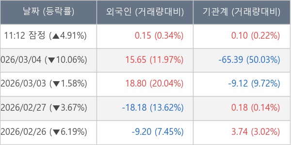 [표] 주요 기관별 순매매량 (단위 만주)