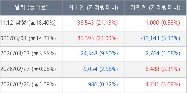 [표] 주요 기관별 순매매량 (단위 주)