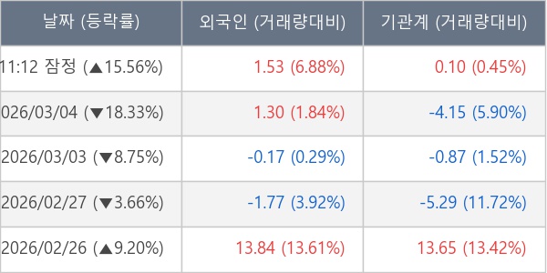 [표] 주요 기관별 순매매량 (단위 만주)