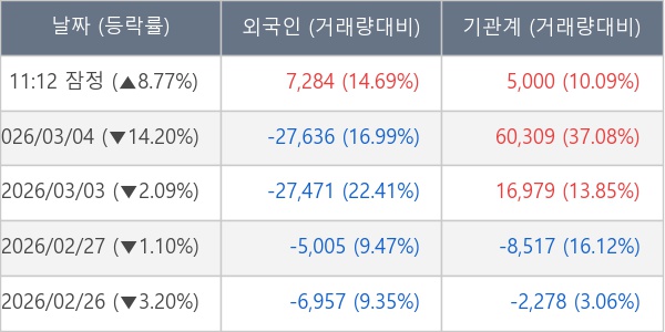 [표] 주요 기관별 순매매량 (단위 주)