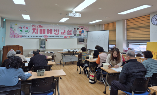 (인천=국제뉴스) 이병훈 기자 = 인천 중구는 3월 4일부터 4월 22일까지 매주 수요일마다 국제도시보건과에서 55세 이상 주민을 대상으로 '뇌를 맑게, 색을 채움'이라는 주제로 '2026년 상반기 치매예방교실'을 운영한다.