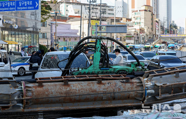 [대구=뉴시스] 이무열 기자 = 4일 오전 9시6분께 대구 수성구 만촌동 만촌네거리에서 공사 중인 천공기가 쓰러졌다.이 사고로 2명이 병원으로 이송되는 등 경상자 3명이 발생했다. 2026.03.04. lmy@newsis.com |