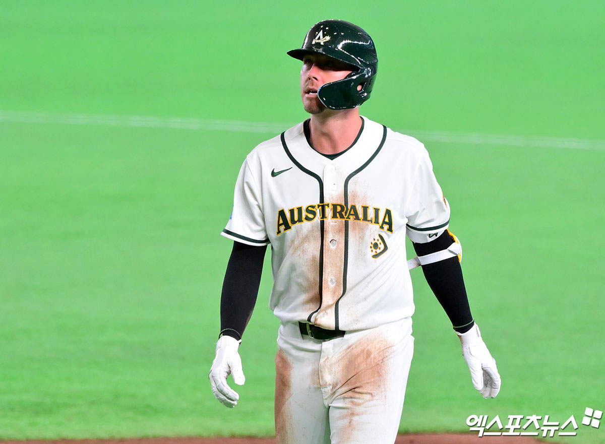 (엑스포츠뉴스 도쿄(일본), 김한준 기자) 5일 오후 일본 도쿄돔에서 열린 2026 월드베이스볼클래식(WBC) C조 대만과 호주의 경기, 4회말 2사 호주 데일(KIA)이 내야땅볼로 아웃된 후 더그아웃으로 향하고 있다.