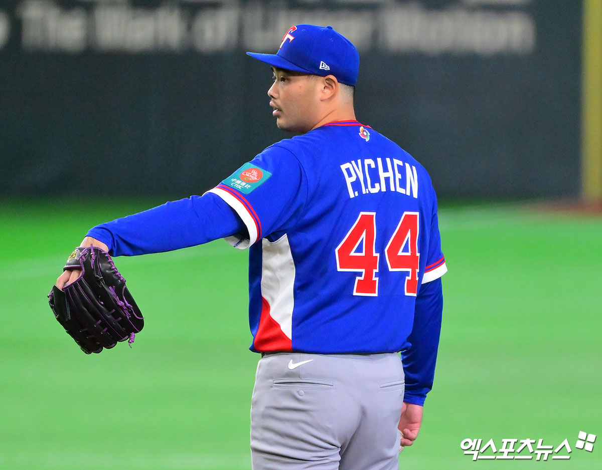 (엑스포츠뉴스 도쿄(일본), 김한준 기자) 5일 오후 일본 도쿄돔에서 열린 2026 월드베이스볼클래식(WBC) C조 대만과 호주의 경기, 5회말 대만 천보위가 공을 힘차게 던지고 있다.