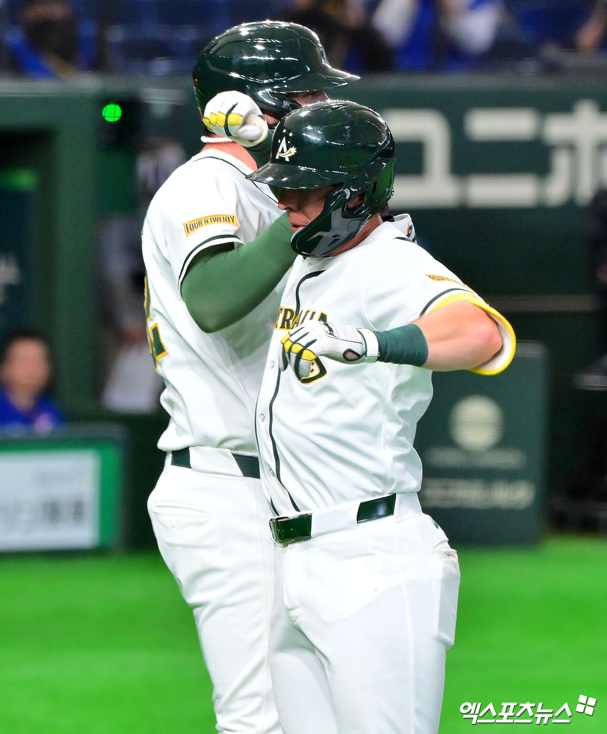 (엑스포츠뉴스 도쿄(일본), 김한준 기자) 5일 오후 일본 도쿄돔에서 열린 2026 월드베이스볼클래식(WBC) C조 대만과 호주의 경기, 5회말 무사 1루 호주 퍼킨스가 투런 홈런을 날린 후 기뻐하고 있다.