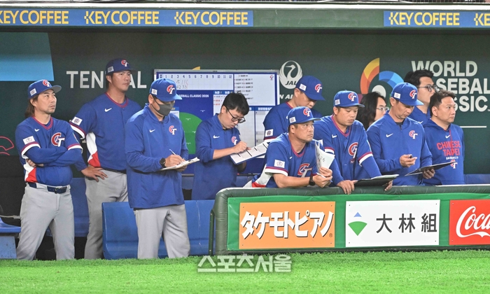 WBC 대만 야구대표팀이 5일 일본 도쿄 도쿄돔에서 열린 호주와의 경기 5회말 호주 퍼킨스에게 선제 2점 홈런을 허용한 뒤 굳은 표정을 짓고 있다. 2026. 3. 5.