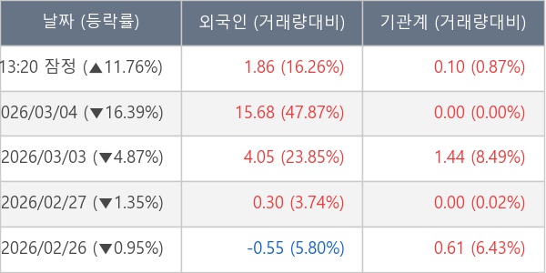 [표] 주요 기관별 순매매량 (단위 만주)