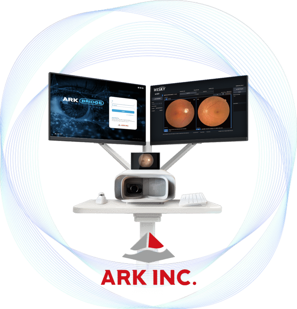 아크는 만성질환 환자의 합병증 예방 및 조기 관리에 특화된 의료 AI 솔루션을 개발·공급하고 있다. 주요 기능은 황반변성·녹내장·당뇨망막병증 등 3대 실명질환 스크리닝, 심혈관질환(CVD)·만성신장질환(CKD) 위험도 평가, HRV(심박변이도) 기반 자율신경 검사 등이다. 현재 대웅제약과의 유통 협력 체계를 통해 의료기관 공급을 확대하고 있다.