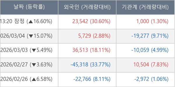 [표] 주요 기관별 순매매량 (단위 주)