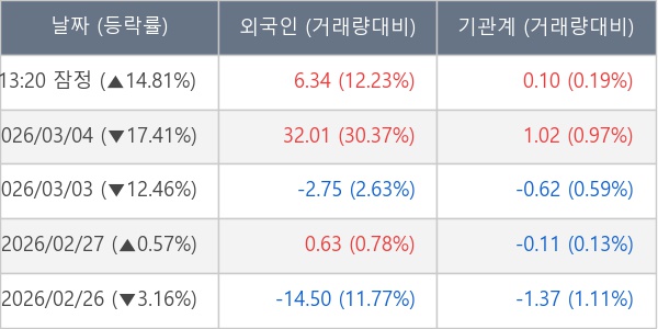 [표] 주요 기관별 순매매량 (단위 만주)