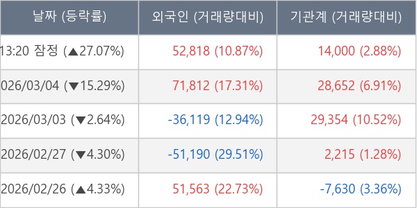 [표] 외국인ㆍ기관 순매매량 (단위 주)