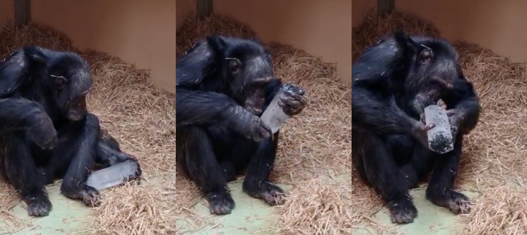 스페인 보호시설에 있는 침팬지 토티가 석영 결정체를 살펴보는 모습./Frontiers in Psychology |