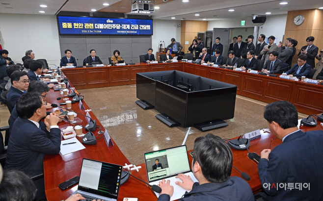 아시아투데이 송의주 기자 = 5일 국회 의원회관에서 중동 현안 관련 더불어민주당-재계 긴급 간담회가 열리고 있다. |