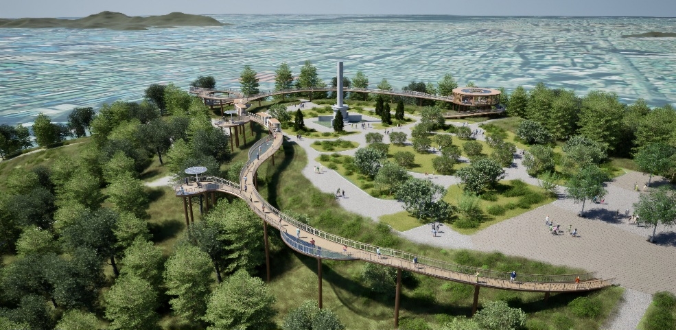 당초 타워형 전망대 형태로 계획됐으나 지형을 최대한 살려 공원 상부에서 도심을 조망할 수 있는 ‘트리탑 트레일’ 방식으로 변경했다.
