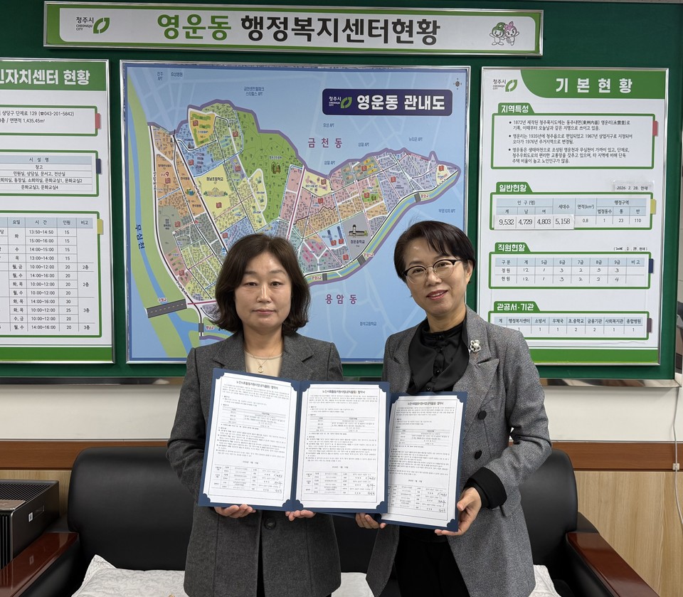 충북 청주시 상당구 영운동 행정복지센터와 상당시니어클럽은 5일 '시니어 자원 분리배출'협약을 체결했다.