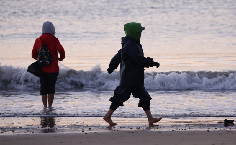 부산 광안리해수욕장에서 한 시민이 두꺼운 외투를 입고 맨발걷기를 하고 있다. 사진=연합뉴스 |