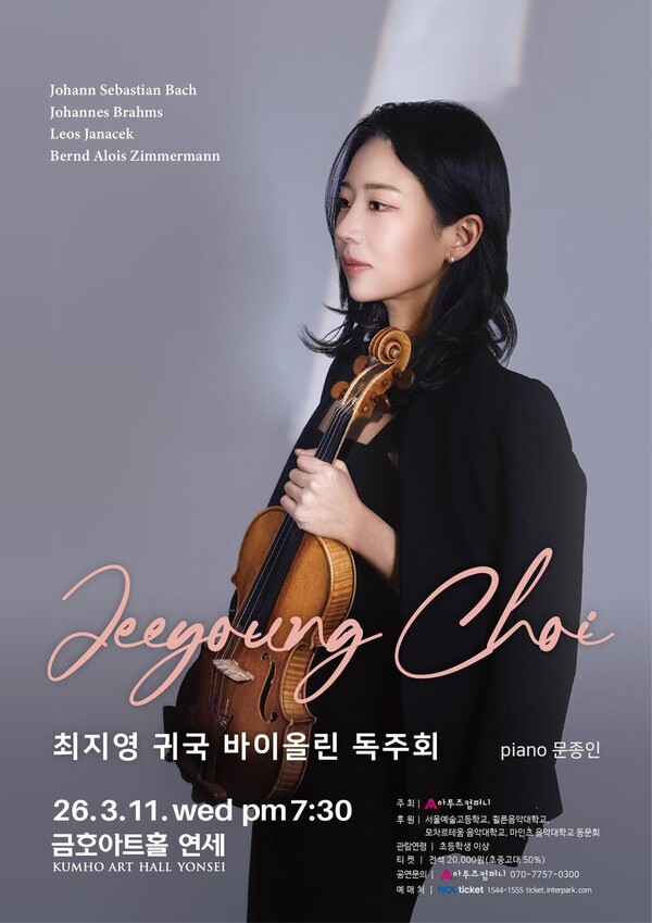 아투즈컴퍼니 측은 "소나타 형식을 중심으로 시대별 작품을 탐구하는 이번 프로그램을 통해 바이올리니스트 최지영만의 대담한 해석과 독보적인 음악 세계가 충분히 드러날 것"이라고 기대를 밝혔다.