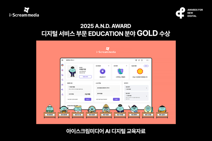 아이스크림미디어는 'AI 디지털 교육자료'로 2025 앤어워드(Awards For New Digital Award) 디지털 서비스 부문 교육(EDUCATION) 분야에서 골드(Gold)를 수상했다고 5일 밝혔다.