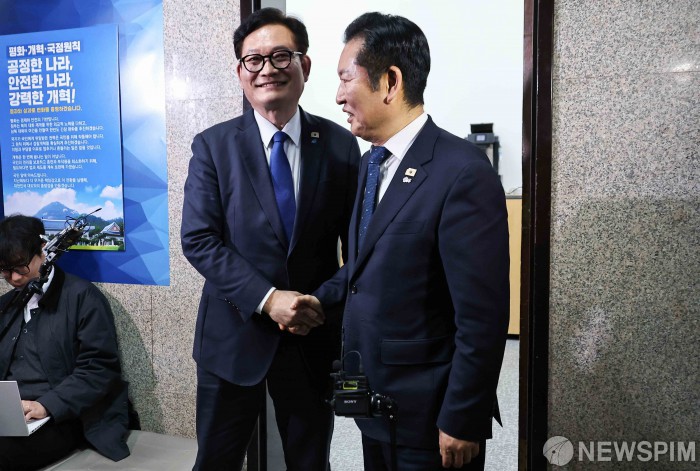 [서울=뉴스핌] 윤창빈 기자 = 송영길 더불어민주당 전 대표가 5일 오후 서울 여의도 국회에서 정청래 더불어민주당 대표와 면담을 마치고 나서고 있다. 2026.03.05 pangbin@newspim.com