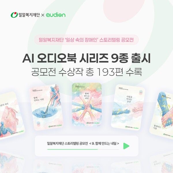 정형석 밀알복지재단 상임대표는 “스토리텔링 공모전을 통해 발굴된 소중한 이야기들이 AI 오디오북으로 재탄생해 더 많은 시민에게 전해질 수 있게 돼 뜻깊다”며 “이번 제작을 함께해 준 오디언에 깊이 감사드린다”고 전했다.