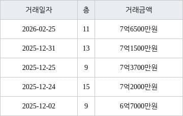 국토교통부 실거래가 공개시스템에 따르면 지난 2026년 2월 25일 서울특별시 노원구 하계동 하계6단지(장미) 11층 전용면적 59㎡형이 7억6500만원에 거래됐다. 해당 아파트의 동일 면적형 기준으로 역대 최고가격이다. 직전 최고가 기록은 지난 2025년 12월 25일 7억3700만원에 거래된 물건이다.