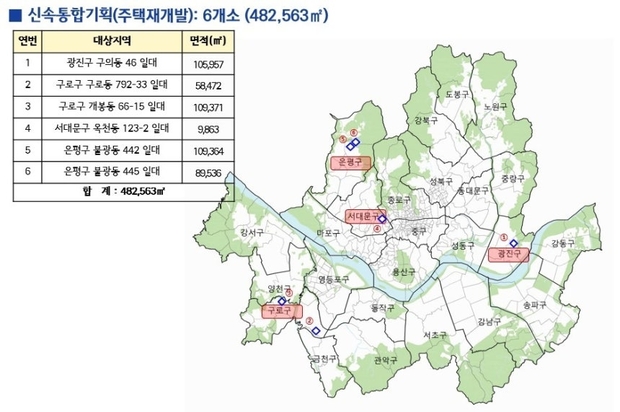 대상 지역은 △광진구 구의동 46 일대 △구로구 구로동 792-33 일대 △구로구 개봉동 66-15 일대 △서대문구 옥천동 132-2 일대 △은평구 불광동 442 일대 △불광동 445 일대 등이다.