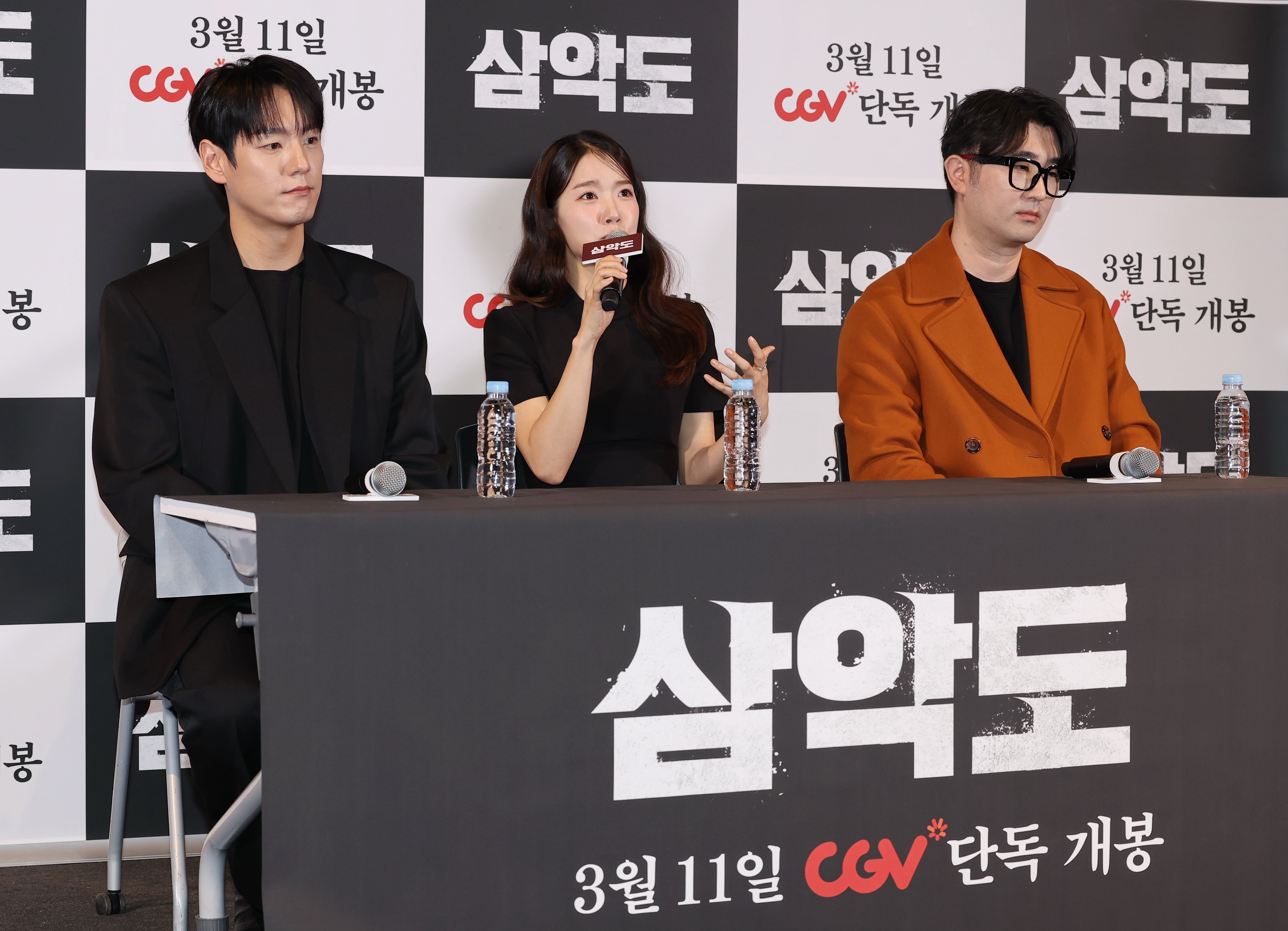 5일 서울 용산구 CGV용산아이파크몰에서는 영화 ‘삼악도’ 제작보고회가 열렸다. 이 자리에는 채기준 감독, 주연 배우 조윤서, 곽시양이 참석했다. 오는 3월 11일 개봉하는 영화 ‘삼악도’는 일제강점기 이후 자취를 감춘 사이비 종교를 둘러싼 섬뜩한 비밀을 그린 공포영화다.