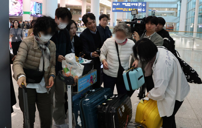 [이데일리 방인권 기자] 미국-이란 전쟁으로 중동 지역 긴장이 고조되는 가운데 이란에 체류하던 교민이 5일 인천국제공항으로 입국, 취재진의 질의를 받고 있다.