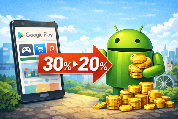 구글은 4일(현지시간) 공식 개발자 블로그를 통해 안드로이드 앱 내 결제 수수료를 최대 30%에서 20%로 인하하는 안을 사미르 사마트 구글 안드로이드 생태계 담당 사장 명의로 공개했다.
