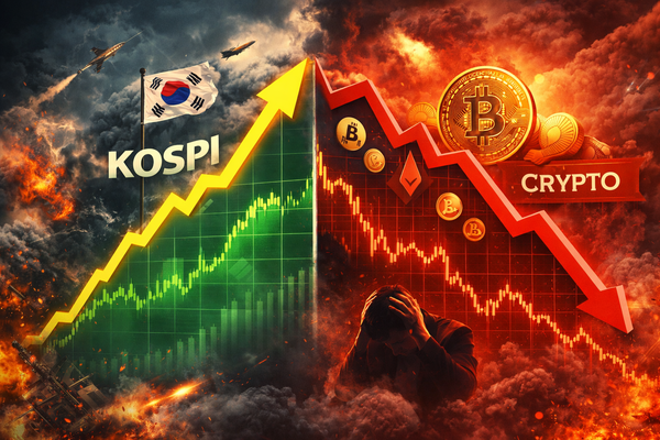 미국·이스라엘의 이란 공습 여파로 코스피가 급락과 급등을 오가며 전례 없는 널뛰기 장세를 이어가고 있다. '서킷 브레이커'와 '매도 사이드카'가 발동된 지 하루 만에 '매수 사이드카'가 발동되면서 롤러코스터 행보다. 반면 국내 가상자산 시장은 유동성 고갈로 침체기를 맞아 꽃샘추위 시기를 보내고 있다.