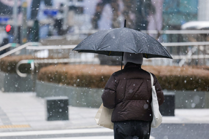 눈이 내린 지난달 12일 서울 중구 을지로입구역 인근에서 우산을 쓴 시민이 이동하고 있다. (사진=연합뉴스) |
