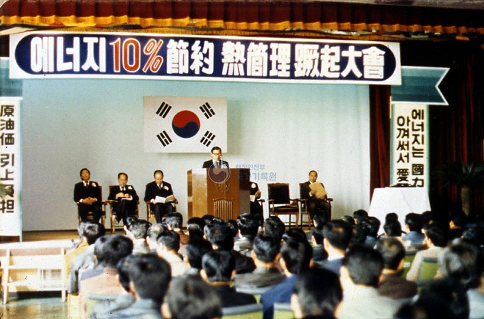 1차 오일쇼크의 여파가 지속되던 1977년 정부가 개최한 '에너지 10% 절약 열관리 궐기 대회'의 모습. /국가기록원 |