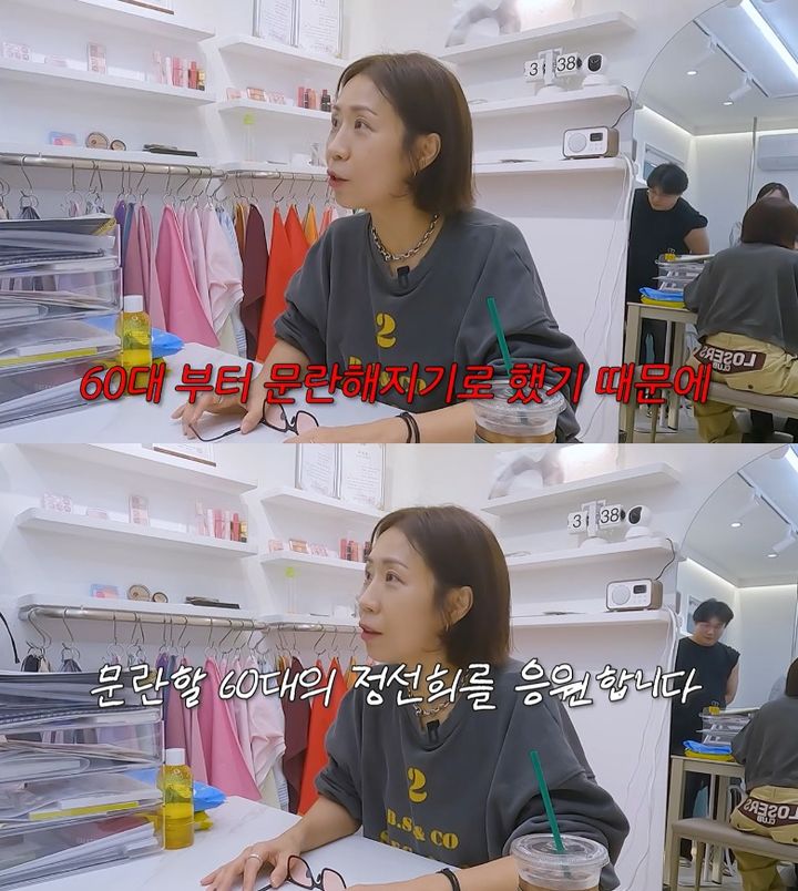 진단에 앞서 정선희는 업체 대표에게 방문객들이 퍼스널 컬러를 찾는 주된 목적을 물었다. "더 예뻐 보이고, 매력적으로 보이고 싶어서"라는 답변이 돌아오자 정선희는 "나는 이미 늦었다. 반세기를 이렇게 살았다"고 자조했다.