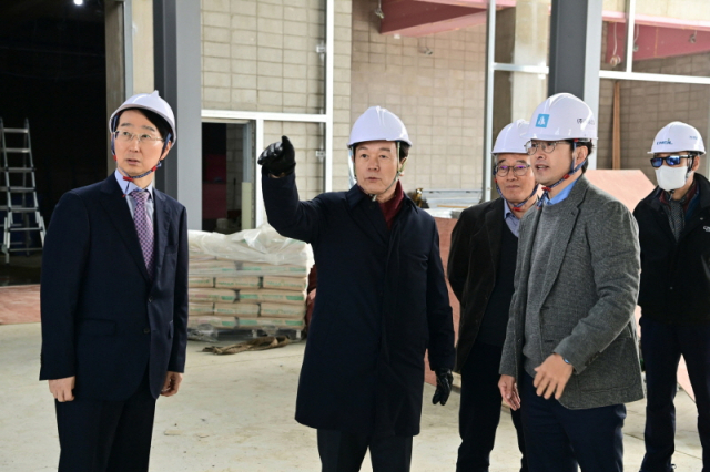경남 진주시는 조규일 진주시장과 김정환 경남테크노파크 원장이 5일 이반성면 가산일반산업단지에 위치한 '미래항공기체(AAV) 실증센터' 공사 현장을 방문해 공정 추진 현황과 안전관리 실태를 점검하고 센터의 성공적 구축과 향후 협력 방안을 논의했다고 밝혔다.