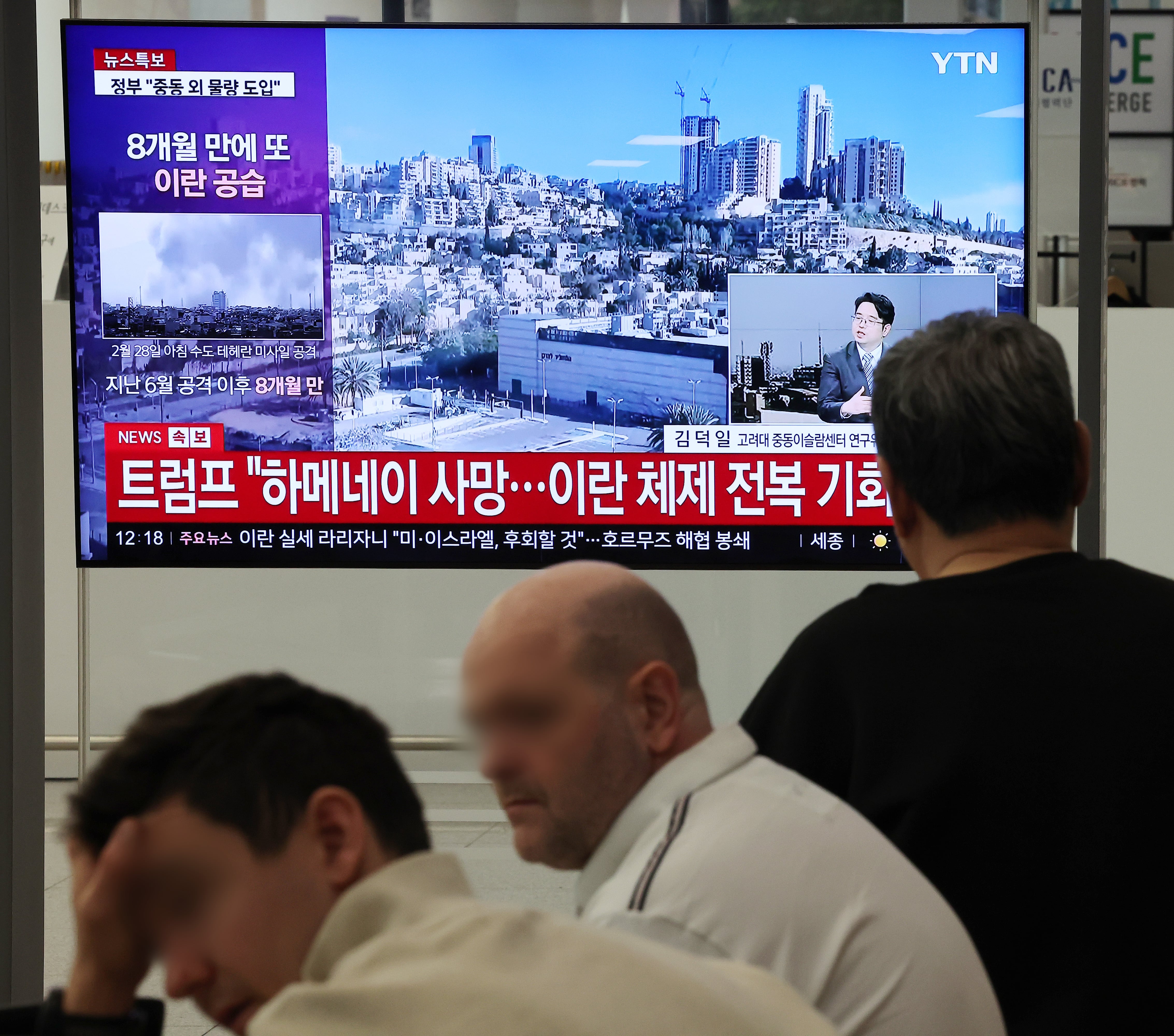 미국과 이스라엘의 공격으로 중동 지역 긴장이 급격히 고조되며 두바이행 노선 등이 결항한 가운데 3월 1일 인천공항에서 외국인들이 관련 뉴스를 바라보고 있다./연합뉴스 |