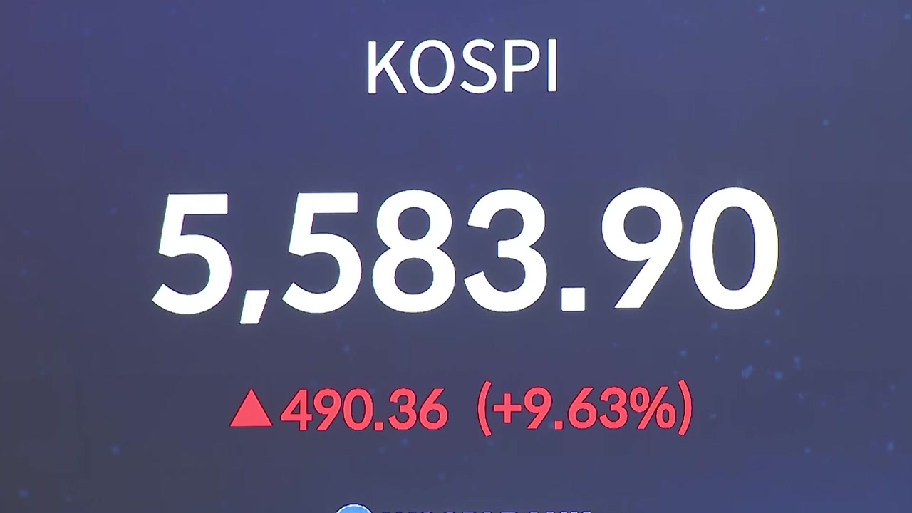 코스피는 5,250으로 출발해 전날보다 9.6%, 지수로는 490p 오른 5,583으로 마감했습니다.