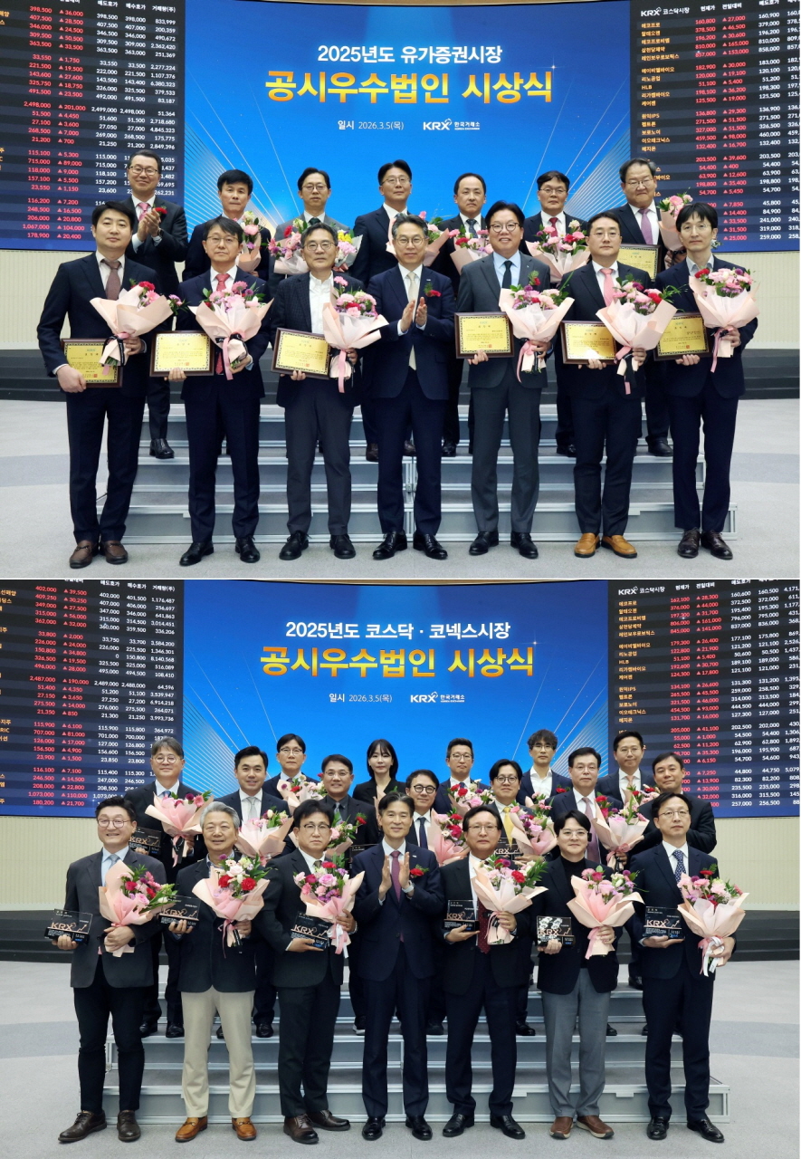 2025년도 유가증권시장 공시우수법인 및 코스탁, 코넥스시장 공시우수법인 시상식 기념사진.(사진=한국거래소) |