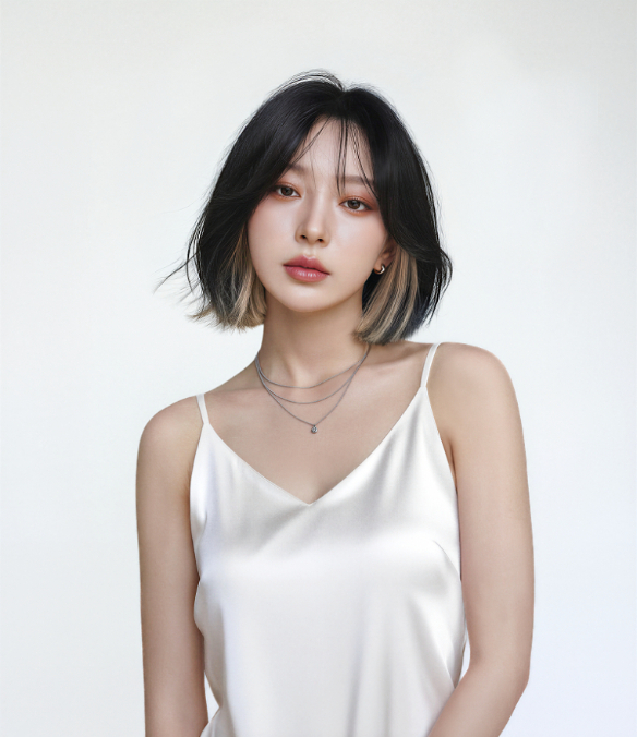 공개된 화보 속 '태슬 스위치(단발 스타일)'는 청록색의 콰이엇틸 베이스에 귀 뒤로 살짝 비치는 '클라우드 블론드'를 매치해 차분함 속에 세련된 위트를 더했다. 함께 공개된 '허쉬 스위치(중단발 레이어드 스타일)'는 가벼운 레이어드 컷 사이로 스며 나오는 '누드로즈' 컬러가 몽환적이면서도 역동적인 입체감을 완성한다. 베이스는 매트한 베이지 계열의 세이지 컬러가 사용되었다