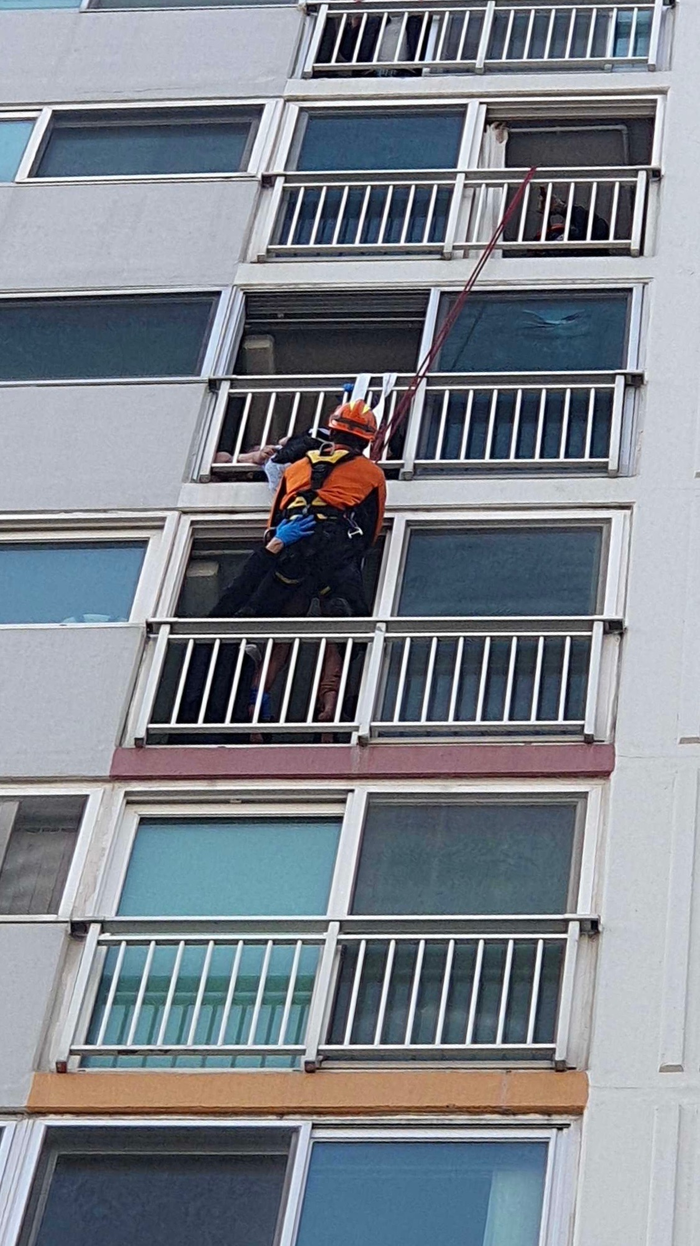 아파트 10층 난간에 매달려 위기 상황에 처해있던 시민 구조