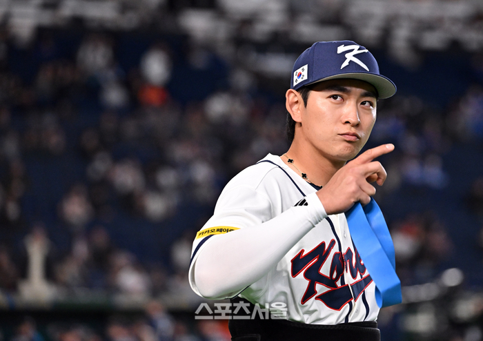 대한민국 야구대표팀의 주장 이정후가 5일 일본 도쿄 도쿄돔에서 열린 2026 월드 베이스볼 클래식(WBC) 조별리그 체코와의 경기에 앞서 관중석을 향해 인사를 하고 있다. 2026. 3. 5.