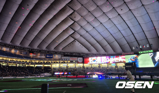 경기에 앞서 도쿄돔 레이저쇼가 진행되고 있다. 2026.03.05/spjj@osen.co.kr