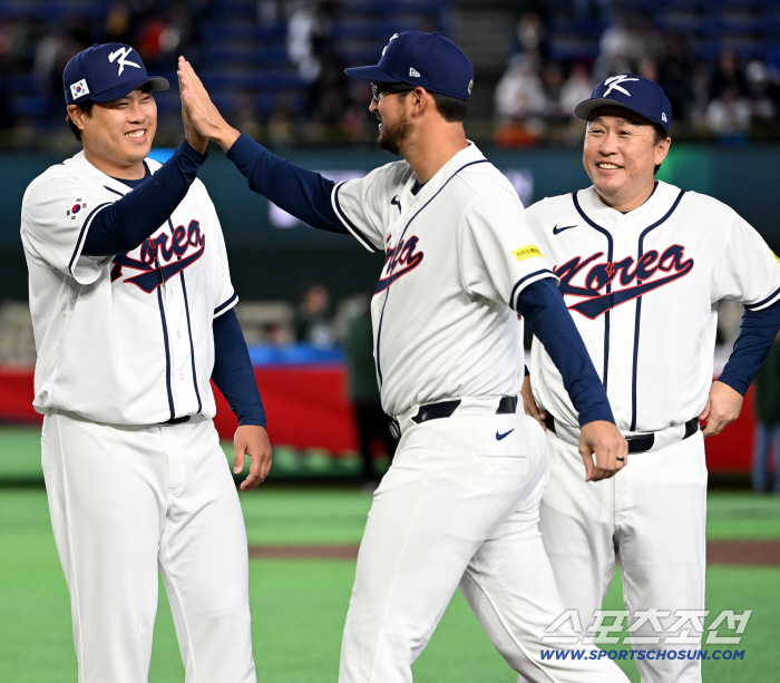 5일 일본 도쿄돔에서 열린 WBC(월드베이스볼클래식) 한국과 체코의 경기. 선수소개때 류현진이 데인 더닝을 맞이하고 있다. 도쿄(일본)=허상욱 기자wook@sportschosun.com/2026.03.05/