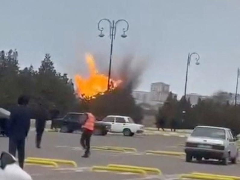 5일 아제르바이잔 나흐치반 공항에서 드론이 폭발하고 있다. /로이터 연합뉴스 |