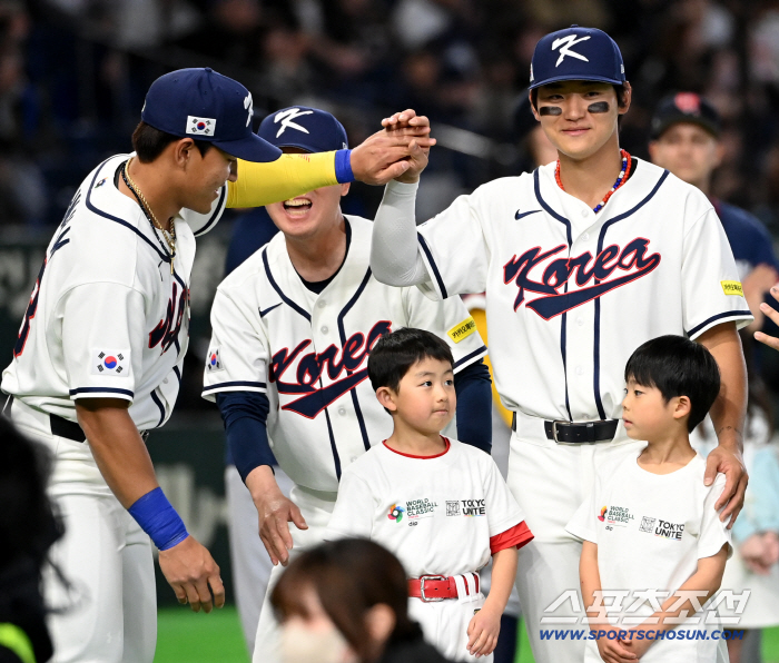 5일 일본 도쿄돔에서 열린 WBC(월드베이스볼클래식) 한국과 체코의 경기. 선수 소개때 안현민과 김도영이 하이파이브를 하고 있다. 도쿄(일본)=허상욱 기자wook@sportschosun.com/2026.03.05/